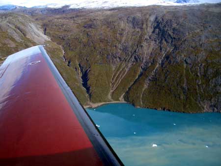 Most Malibu converted to Jetprops are offered in the USA. Jack a South African pilot found his aircraft in California. The normal procedure is a pre-purchase inspection that in our case was done in HUT Kansas. The most dominant feature on the Jetprop DLX is the powerplant. 560SHP are turning the prop. (here the old style 'paddles') The new owner needed flight time and experience in his plane and we decided to do the ferry flight together. Little ahead of schedule we went to visite some friends of the owner. Only we had to go 500NM west, in the opposite direction. But with the Jetprop is was easy to justify, done in 2 hours and with 70Gal Jet A1. Over the Denver airport to the Rocky Mountains. ![]() Our first stop Vail. (this is not the terminal building only the FBO) We stayed overnight and did some sightseeing the next day. Late afternoon we continued, happy to get into our pressurized vessel. The previous night we spent at 11000' hotel room pressure. The Piper cabin is giving 10000 feet in level flight. (some countries require Oxygen for flights above 10000' when longer than 30min ? :-) Destination Winnipeg Canada, landing just at sunset. the following day we had to fly from Winnipeg via Timmens (650NM, refueling and for a quick lunch stop) to Goose Bay (900NM). Enroute is Warbush known for the mining industry. The last 20NM VFR low level. The Military trainers in this aria would consider this fairly high but going below the radar was not our intention. Another day setting out to cross the Atlantic. Departure early morning from Goose Bay Canada CYYR. to Greenland, distance 670NM routing LOACH - N59W050 - SI to BGBW The part over water is around 500NM. Before reaching the Narsassuak airport that lies at the end of the fjord we passed the town of Narsak that has no airport itself. It is linked to the rest of the world by helicopter or small ships via Narsassuak. Along the Fjord 30NM inland is the airport. Supply comes with a cargo ferry when the water is not frozen. Jet fuel is stored in large Tanks, it is cheap and readily available. The landscape of Southern Greenland is breathtaking. But the mountains around the airport rise immediately to 4/5000 feet. but the Jetprop has no problem with this terrain and the 2000'/min climb rate is very comfortable. good to have a PT6 turbine engine here! The second leg of the day to Iceland